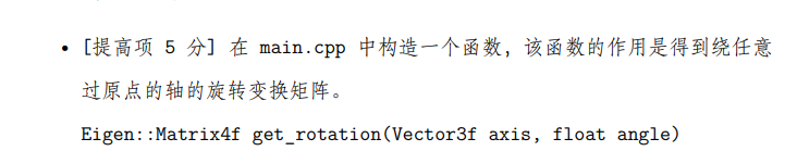 要求我们构建一个可以绕绕任意过原点的轴旋转angle角度的矩阵,我们可以参考第4节中的这个公式
