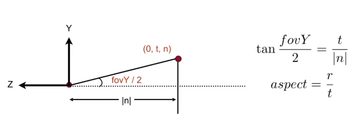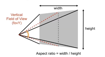 我们从摄像机出发,看向某个方向,会有一个近平面,我们给这个近平面定义一个宽高比Aspect Ratio $Aspect Ratio = \frac{width}{height}$ 这就相当于我们得显示器