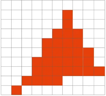 我们使用像素的中心点去采样屏幕空间,然后判断是否在三角形内,然后我们最后根据函数值,我们填回屏幕像素,我们会得到下面这样的结果