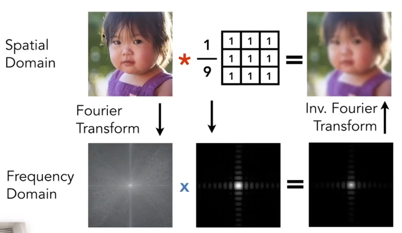 如下图,通过傅里叶变换我们将左边的图像从空域映射到频域,