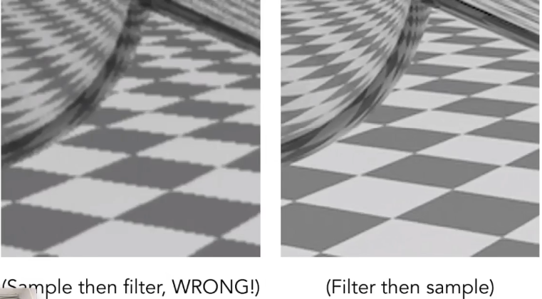 解决走样的一般方式是在采样之前进行模糊或者滤波