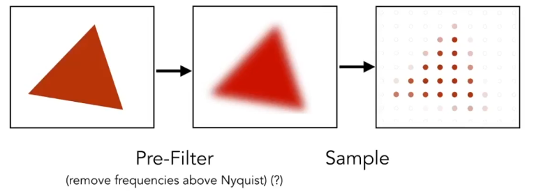 所以在光栅化中我们先进行滤波(模糊/卷积/平均),然后再进行采样