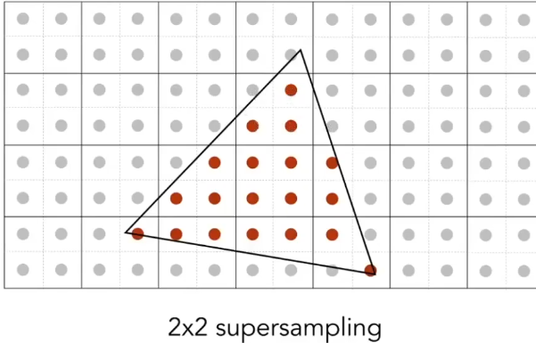 MSAA 通过将一个像素划分为多个像素,再使用划分出来的新像素进行判断是否在三角形内部,