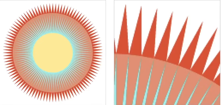 我们看到我们得到的图形有锯齿这么一种问题,这节课我们将学习如何抗锯齿/反走样(Antialiasing)