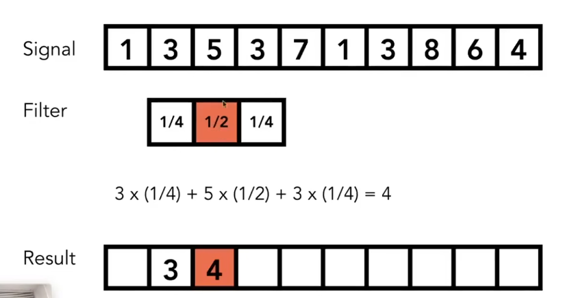 卷积其实就是一种平均操作,其实就是使用一个区域,这个区域叫做卷积核(滤波器),卷积核中也有一些权重数,假如说这个卷积核是3x3的,然后我们使用这个卷积核扫描一个图像,那么每次扫描的时候就会读取到图像中3x3区域的像素,然后我们进行一次点积操作再写入到另一张图片中,直到扫描完整张图片。