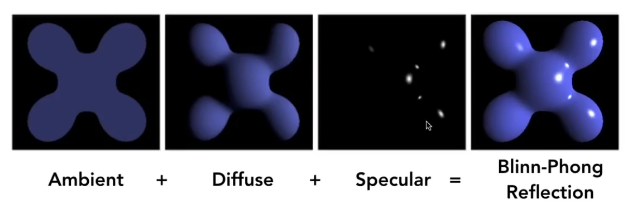 最后我们讲漫反射项,镜面反射项,环境光项,全部混合在一起就得到了 Blinn-Phong 光照模型了