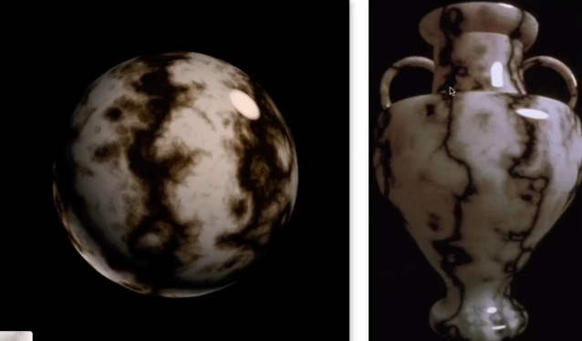 纹理不仅仅是二维的,当然还可以是三维的对于一个模型他所有的内部的点也都有一个纹理进行映射,并且我们可以使用程序自动生成带有随机效果的噪声纹理,比如大理石的纹理,通过噪声算法我们可以得到纹理的随机效果