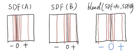 下面的过程就是将两个物体的SDF进行混合再回复成几何的过程,