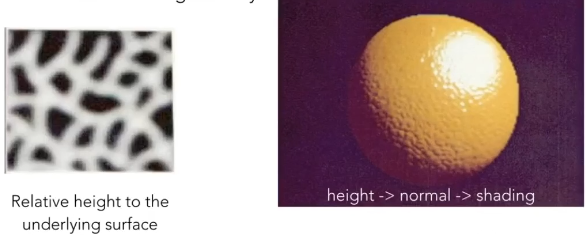 既然我们可以使用贴图替换Bilnn-Phong模型中的环境光系数,以及漫反射系数(纹理贴图), 那么我们发散一下想,是不是还能替换其他的项,是的我们还能定义在不同的位置的点的相对高度是多少(凹凸贴图),还能定义不同的点的法线是多少(法线贴图)