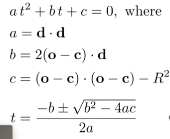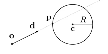 方程中 $\mathbf{o}$ 、$\mathbf{d}$、$\mathbf{c}$、$R$是已知的,展开我们得到