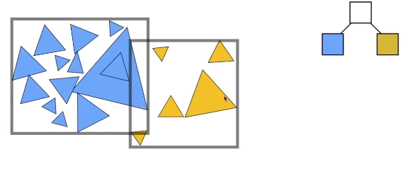 我们可以从物体的角度,把所有的物体的AABB作为根节点,让后把物体分成两个部分再求两个部分物体的AABB